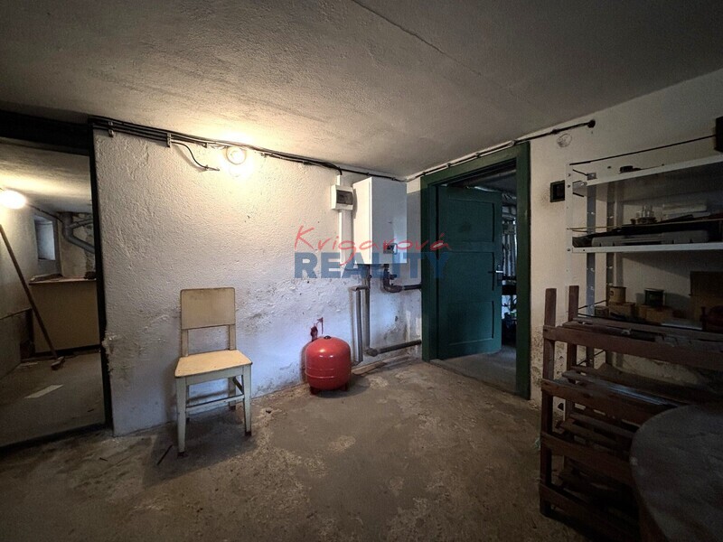 Doporučuji samostatný rodinný dům v nádherném místě a klidné ulici Hluboká nad Vltavou Zámostí. Jedná se o dům v původním, zachovalém stavu postavený v roce 1947, se zastřešenou verandou, komplet podsklepený (kotelna, prádelna, sklep, dílna), zastavěná plocha 90m2, s dispozicí 2 pokoje ve zvýšeném přízemí a kuchyně, koupelna a WC s komorou celkem 63m2, podkroví jeden pokoj s kuchyní, a půda celkem 66m2. Sklep je suchý, prostorný, rozdělený na 4 místnosti celkem 57m2. Vytápění řešené etážové elektrickým kotlem, ohřev vody přes elektrický bojler. Plyn v domě zavedený není, je v ulici. Dřevěná špaletová okna, zajímavé prvky například vestavěná skříň, vestavěná knihovnička. Stav domu je sice původní, ale zachovalý. Sřecha nová. Na pozemku zahrady se nachází menší stavby pro chov drobných zvířat, garáž s kolnou, studna, zahrada je odkanalizovaná. Dům je s investicí na rekonstrukci velmi zajímavá nemovitost pro rodinné bydlení. Okolí nemovitosti: zámek Hluboká, obchody, školka Montessori, základní škola, plovárna, golfové hřiště, sportovní přístav, vlakové nádraží, veškerá infastruktura, cyklostezky, zologická zahrada, mezinárodní škola, kino, dobré spojení do krajského města. Cena: 9.350.000,–Kč. Energetický štítek se nyní připravuje. Volné ihned po zaplacení.